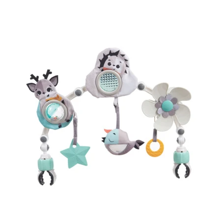 Fixez facilement l’arche à votre poussette ou cosi pour amuser et occuper bébé pendant vos déplacements.