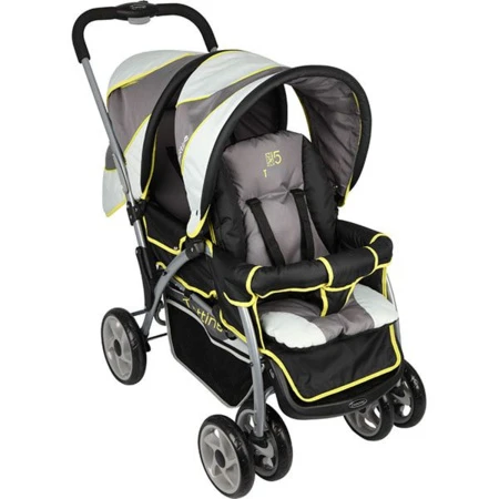– Dossier multipositions.- Assise confotable et molletoné. – Repose jambes réglable. – Harnais de sécurité ancré en 5 points. – Capote Amovible.- Panier à provision. Roues avant fixes ou pivotantes à 360°, Arrière: fixe. Suspensions.Système de freinage : Frein de blocage au pie. Pliage au guidon.