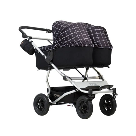 Poussette Duet Mountain Buggy : Une poussette double côte à côte qui se faufile partout… Cette poussette double est aussi large qu’une simple ! Avec seulement 63 cm de largeur, elle est très maniable, en ville comme sur les petits chemins.