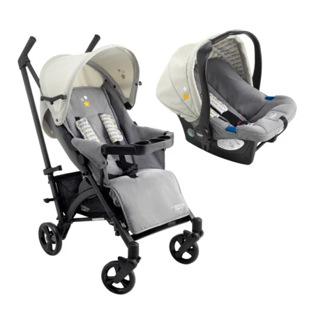 Le pack est composé d’une poussette canne compacte, simple à plier et déplier et d’un siège auto.