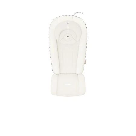 Sa têtière est spécialement conçue et formée pour soutenir la tête du bébé et éviter une déformation de son crâne. La têtière est fixée à l’aide de scratch, ce qui lui permet d’être facilement nettoyée et ajustée.