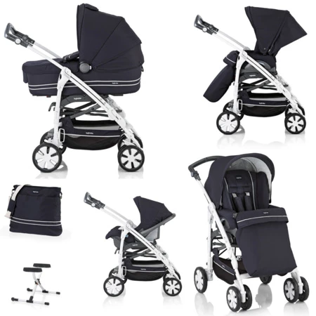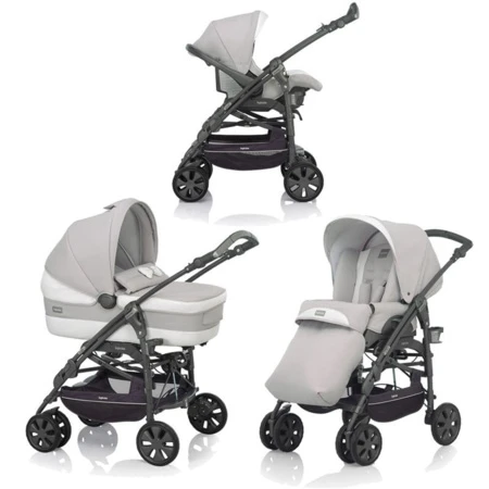 Le trio Otutto inclut le châssis, l’assise pour chassis, la nacelle le siège auto Huggy. Les éléments peuvent être facilement accrochés au chassis grace au système Easy Clip.